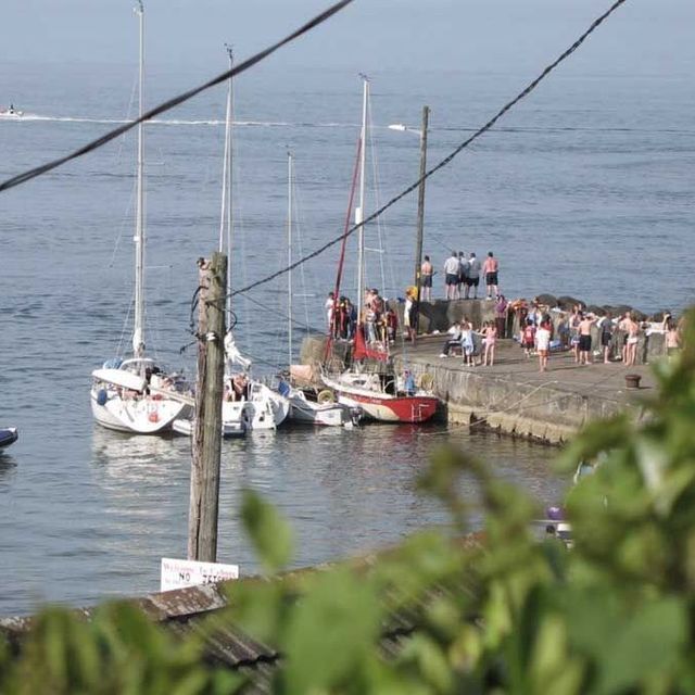 The pier itself is a busy place, especially in the summertime. For generations, children have fished for crabs from the small bridge that joins the older section of the pier to the newer extension, while many fishing boats are launched daily from the slipway. The churning effect of the tides provides superb fishing opportunities in the whole area. A variety of species like herring, mackerel, tope, smooth hound, spur dog, ray, bass, flounder, whiting, and dogfish can all be found here at different times. Even night fishing directly from the pier itself can produce great results. Sea anglers also frequent the small beach to the locally known North Beach, as do many families, who enjoy swimming and bathing in the shallow and sheltered area between the beach and the pier.